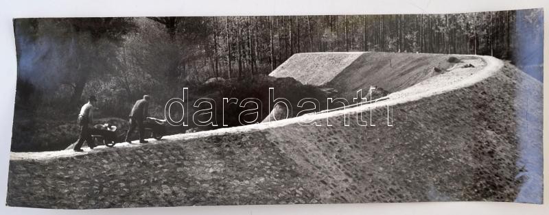 Vincze János (1922-1998): Gátépítők / Dike-building, fotó, hátulján feliratozva, pecséttel jelzett, 14,5×39 cm