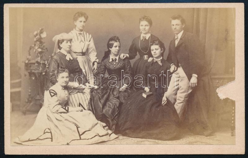 cca 1865 Vizitkártya méretű csoportkép egy párizsi fotográfus műterméb...