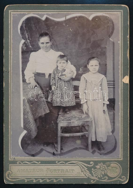 cca 1910 Anya leányaival, keményhátú fotó, sérüléssel, Kapornaki nagyr...