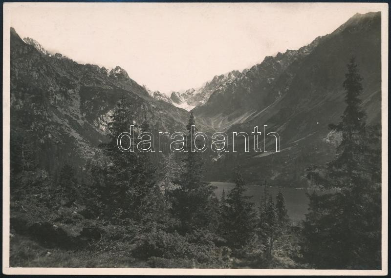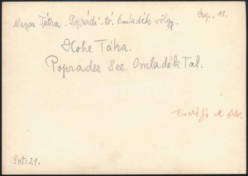 cca 1910 Magas-Tátra, Poprádi-tó, Omladék-völgy, Erdélyi Mór felvétele, hátulján feliratozva, 11,5×16 cm / cca 1910 Vysoké Tatry, the Popradské pleso and the Zlomiská, vintage photo, with notes on its back, 11,5×16 cm