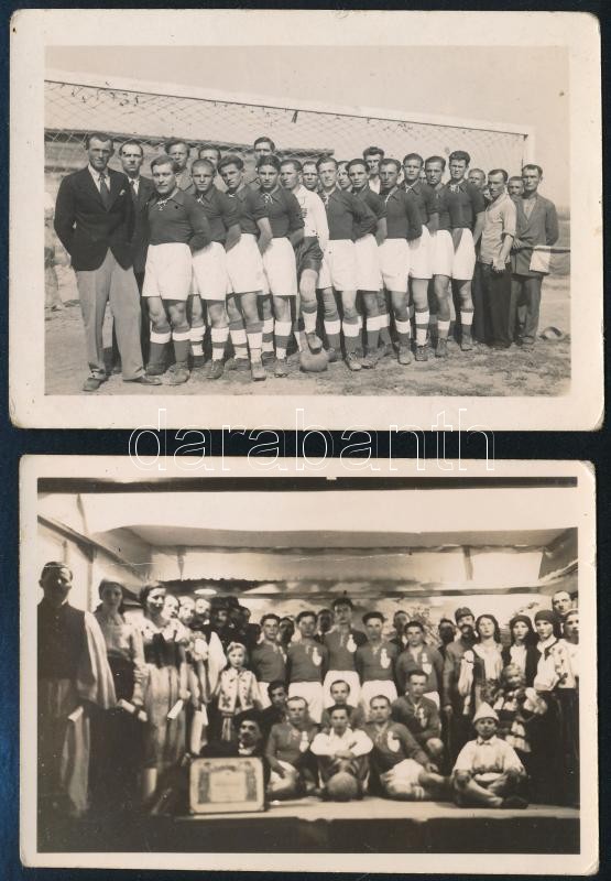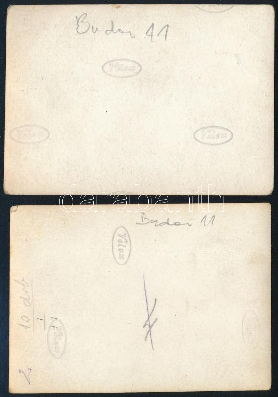 cca 1940-1950 A Budai 11 (33 FC) csapata, 2 db kisméretű kép, hátulján feliratozva, 6×9 cm
