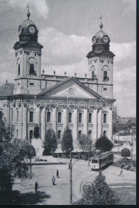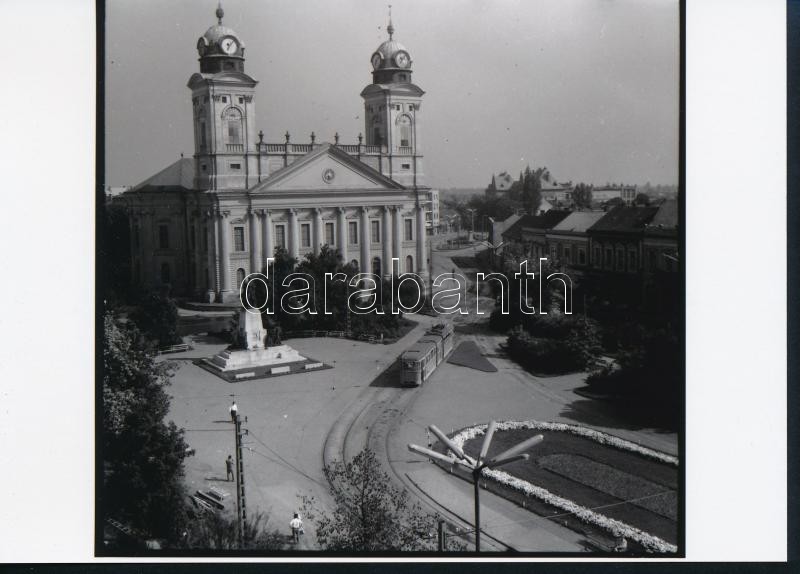 cca 1940 és 1970 között, Debreceni városképek villamosokkal, 2 db vintage fotó, 1 db másolat + 1 db vintage negatív, 6x6 cm és 13x18 cm között