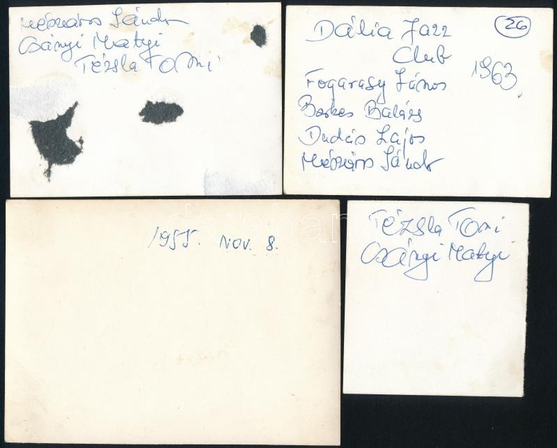cca 1955-1997 14 db fotó a magyar jazz történetéből, egy részük hátulj...
