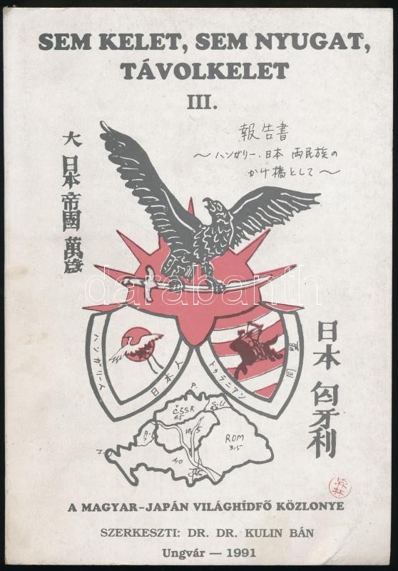 1991 Sem kelet, sem nyugat, távolkelet. A magyar-japán-turáni világhíd... https://www.darabanth.com/en/298-Online-auction/298.0/Other-collectibles/Printed-Materials~100026/1991-Sem-kelet-sem-nyugat-tavolkelet-A-magyar-japan-turani-vilaghidfo-kozlonyve-III-Sze~II1592776