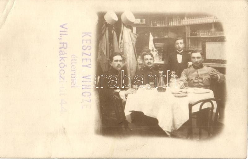 https://www.darabanth.com/en/298-Online-auction/298.0/Postcards/Hungary~200006/Budapest-VII-Rakoczi-ut-44-Keszey-Vincze-etterme-italozo-KuK-katonak-belso-photo-EK~II1538794