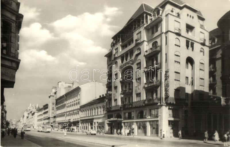 Budapest VIII. Rákóczi út, Palace szálloda, hotel, automobil, villamos...