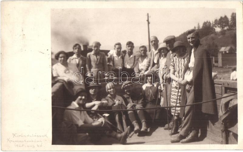 1925 Krasznahorka, Krásnohorska; kirándulók csoportképe vonaton / hiking group on the train. photo