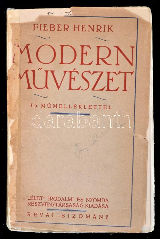 Fieber Henrik: Modern művészet. Bp., é.n., "Élet" Irodalmi és Nyomda Rt. Kiadói papírkötés, javított, ragasztott gerinccel, rossz állapotban.