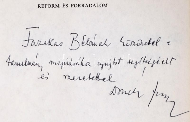 Donáth Ferenc: Reform és forradalom. Bp., 1977, Akadémiai Kiadó. Kiadói egészvászon kötésben, papír védőborítóval. A szerző által dedikált példány!