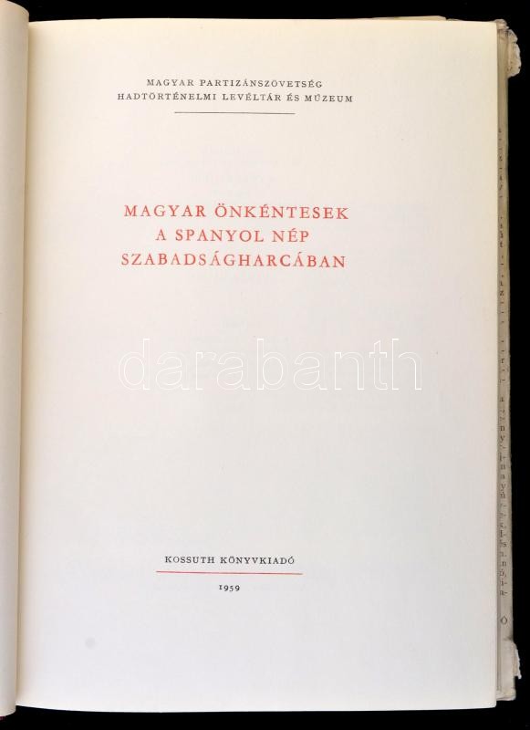 Magyar önkéntesek a spanyol nép szabadságharcában. Összeállította és a... https://www.darabanth.com/en/299-Online-auction/299.0/Books/Books-History~200004/Magyar-onkentesek-a-spanyol-nep-szabadsagharcaban-Osszeallitotta-es-a-bevezeto-tanulmany~II1604750