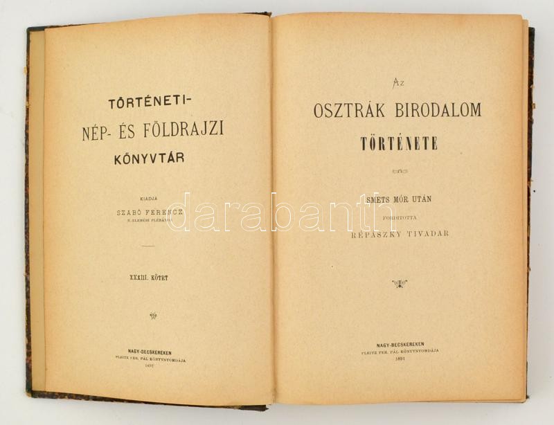 https://www.darabanth.com/en/299-Online-auction/299.0/Books/Books-History~200004/Smets-Mor-Az-Osztrak-Birodalom-tortenete-1-3-kot-Nagybecskerek-1891-1892-Pleitz-Pal-~II1599190