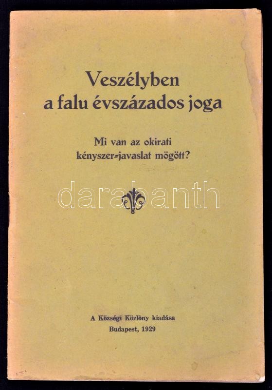 Veszélyben a falu évszázados joga. Mi van az okirati kényszer-javaslat... https://www.darabanth.com/en/299-Online-auction/299.0/Books/Books-Law~200003/Veszelyben-a-falu-evszazados-joga-Mi-van-az-okirati-kenyszer-javaslat-mogott-Bp-1929-Koz~II1604746