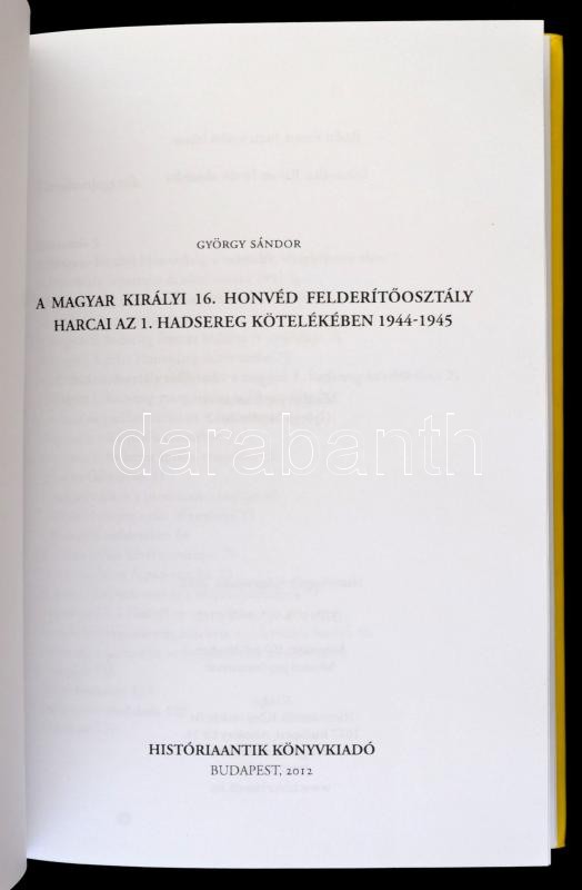 György Sándor: A Magyar Királyi 16. Honvéd Felderítőosztály harcai az... https://www.darabanth.com/en/299-Online-auction/299.0/Books/Books-Military~200005/Gyorgy-Sandor-A-Magyar-Kiralyi-16-Honved-Felderitoosztaly-harcai-az-1-Hadsereg-kotelekC3~II1603014