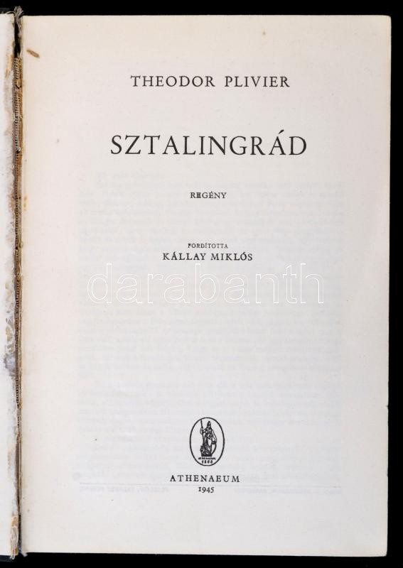 https://www.darabanth.com/en/299-Online-auction/299.0/Books/Books-Military~200005/Theodor-Plivier-Sztalingrad-Forditotta-Kallay-Miklos-Bp-1945-Athenaeum-Kiadoi-felvasz~II1537576