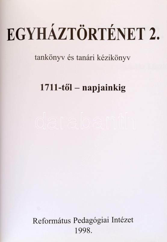 Description: Egyháztörténet. Tankönyv és tanári kézikönyv. Szerk.: Ladányi Sándor - Papp Kornél - Tóth-Kása István - Tőkéczki László. 1-2. köt. Bp., 1999, Református Pedagógiai Intézet. Kartonált papírkötésben, jó állapotban.