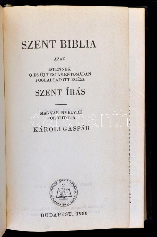 Szent Biblia. Fordította Károli Gáspár. Bp., 1980, Magyar Biblia Tanác...