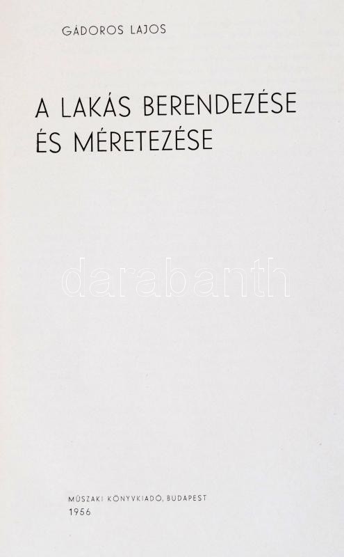 Gádoros Lajos: A lakás berendezése és méretezése. Bp., 1956, Mászaki Könyvkiadó. Kiadói egészvászon-kötés, kiadói kissé szakadozott papír védőborítóban.