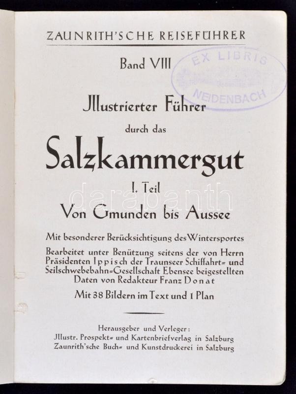 Description: Illustrierter Führer durch das Salzkammergut. 1. köt.: Von Gmunden bis Aussee. Salzburg, é. n., Zaunrith'sche Buch- und Kunstdruckerei (Zaunrith'sche Reiseführer 8.). Térképmelléklettel. Papírkötésben, jó állapotban.