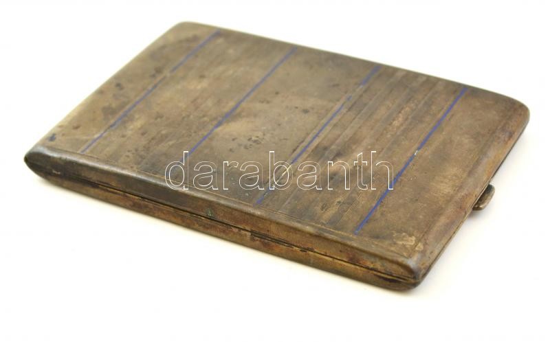 Ezüst (Ag.) cigarettatárca, sérült zománc díszítéssel, 7,5×11 cm, nettó:148 g