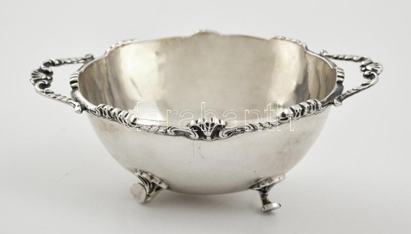 Ezüst (Ag.) tartó, jelzett, kis horpadással, 2 lába görbült, nettó:76 gr, 11,5×7×4,5 cm
