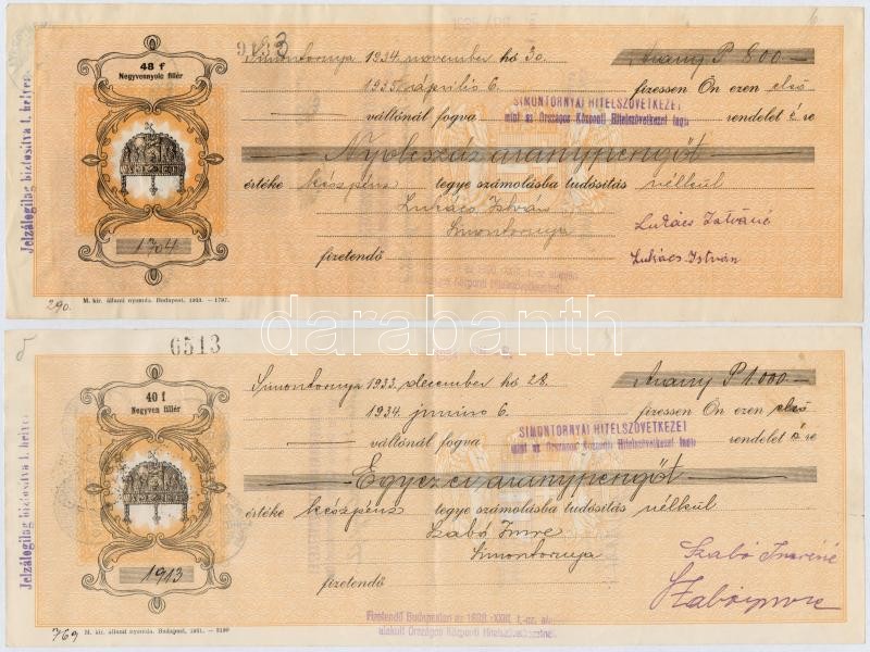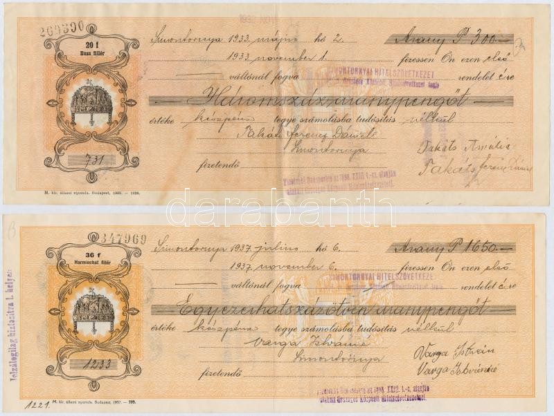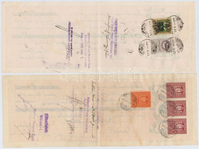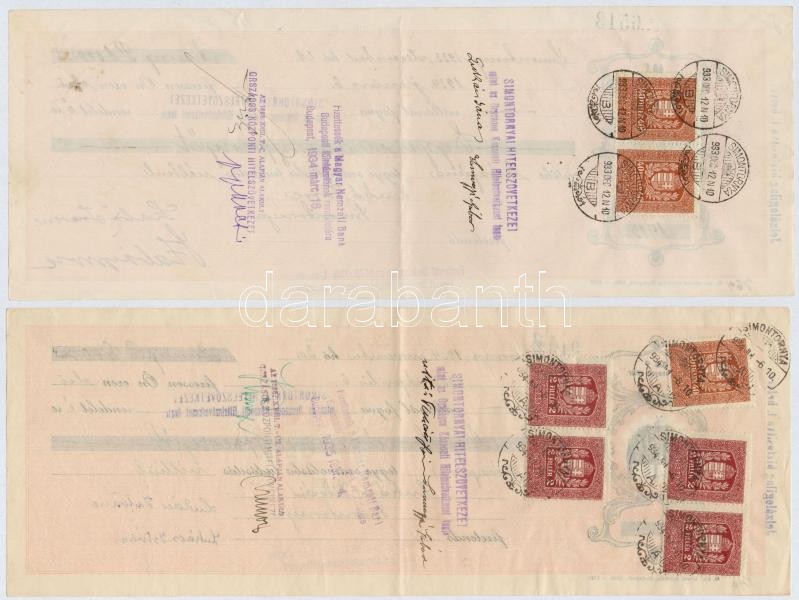 Simontornya 1933-1938. 5db kitöltött váltó, klf felülbélyegzésekkel és...
