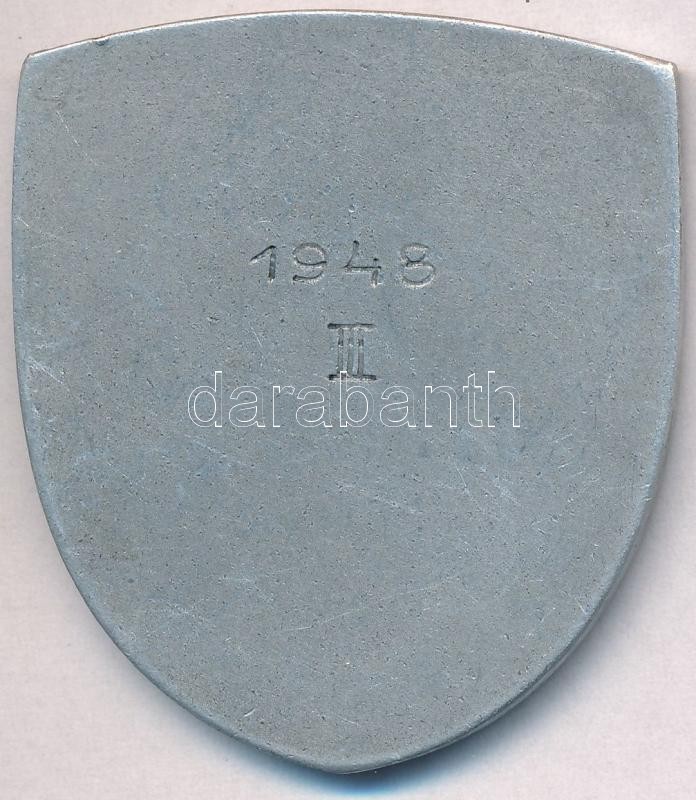 Zombori Kiss István (1902-1953) 1948. "Magyar Általános Hitelbank Tisztviselőinek Sportegylete 1912-1937 / 1948. III." fém díjérem (43x50mm) T:2