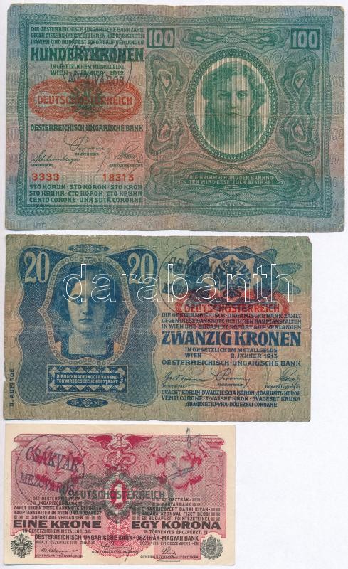 https://www.darabanth.com/en/299-Online-auction/299.0/Numismatics/Hungarian-Banknotes~400007/1912-100K-plus-1913-20K-plus-1916-1K-mindegyik-Deutschosterreich-es-hamis-Csakvar-Mezovaros-f~II1603662