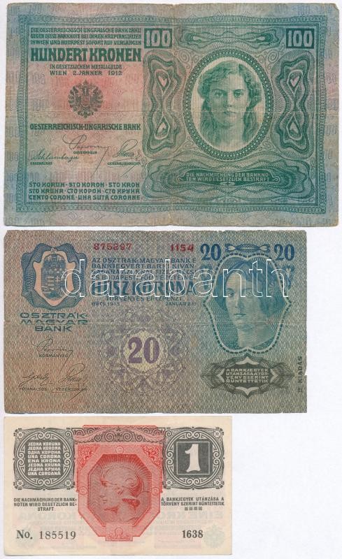 1912. 100K + 1913. 20K + 1916. 1K mindegyik "Deutschösterreich&qu...