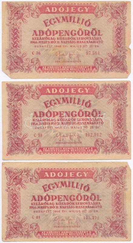 1946. 1.000.000AP (5x) fordított címer T:III,III-
