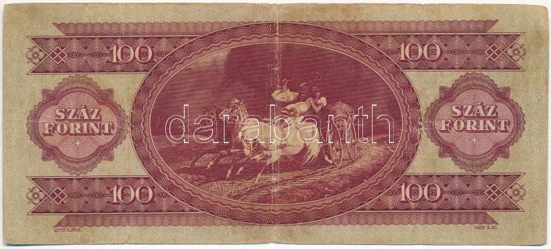 1947. 100Ft T:III,III- hajtás mentén szakadás
