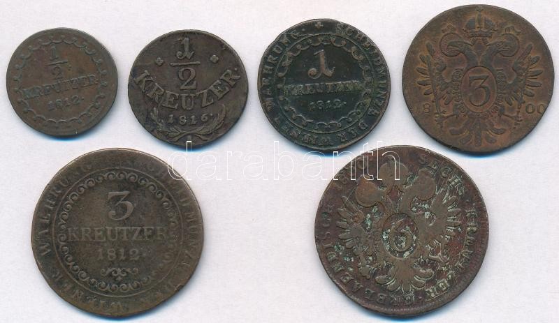 1800-1816. 1/2kr-6kr (6xklf) vegyes rézpénz tétel, főleg magyar verdej...
