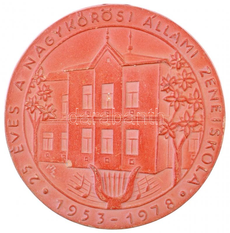 https://www.darabanth.com/en/299-Online-auction/299.0/Numismatics/Hungarian-commemorative-medals-and-plaques~400009/1978-25-eves-a-Nagykorosi-Allami-Zeneiskola--1953-1978-keramia-plakett-103mm-T2-2-lyuka~II1453159