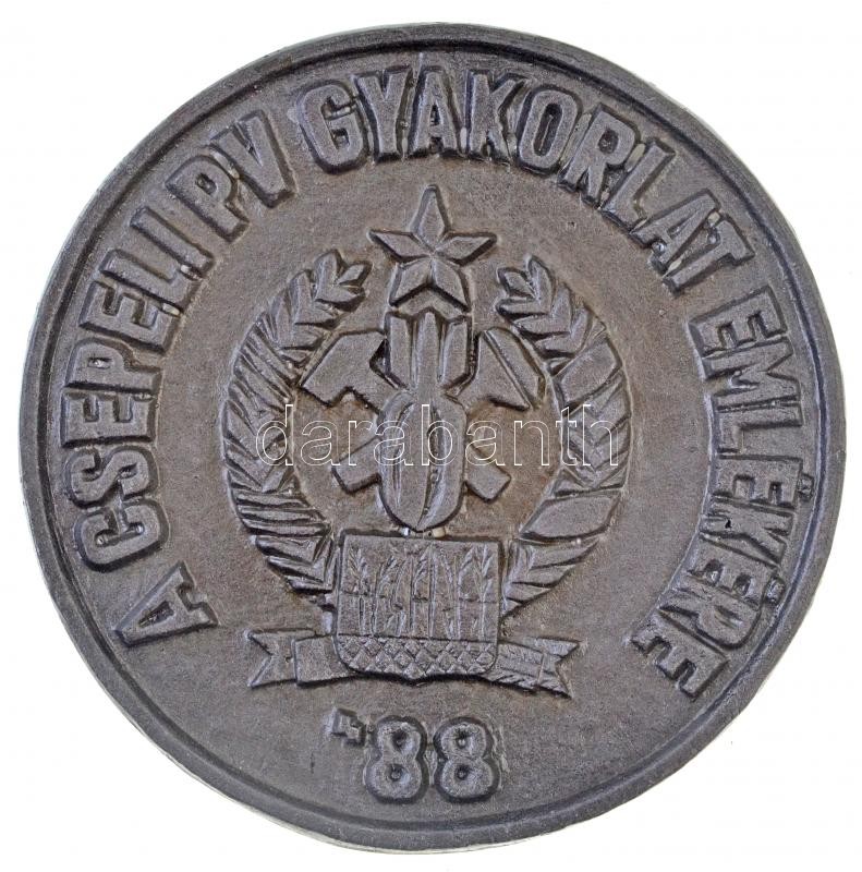 1988. "A csepeli PV gyakorlat emlékére" fém emlékérem eredeti tokban (115mm) T:2