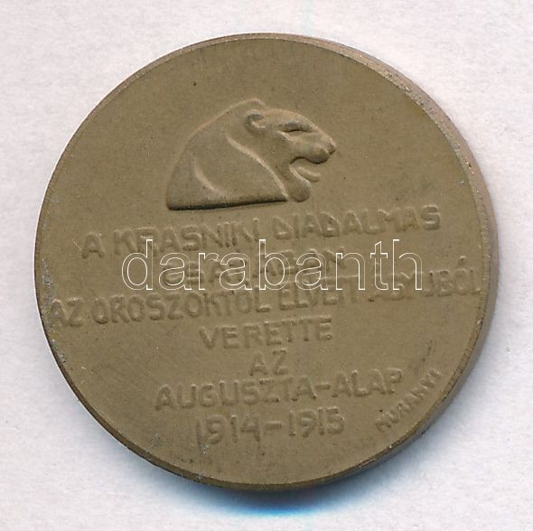 Description: Osztrák-Magyar Monarchia 1915. "A Krasniki diadalmas csatában az oroszoktól elvett ágyúból verette az Auguszta-Alap" Br emlékérem. Szign.: Murányi Gyula (21,5mm) T:2
