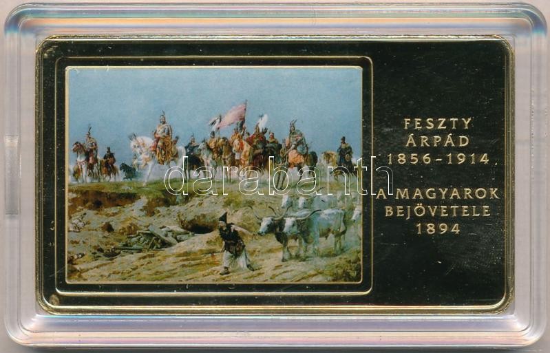 2014. "A magyar festészet remekművei / Feszty Árpád 1856-1914 / A magyarok bejövetele 1894" aranyozott, multicolor Cu emlékérem (35x60mm) T:PP