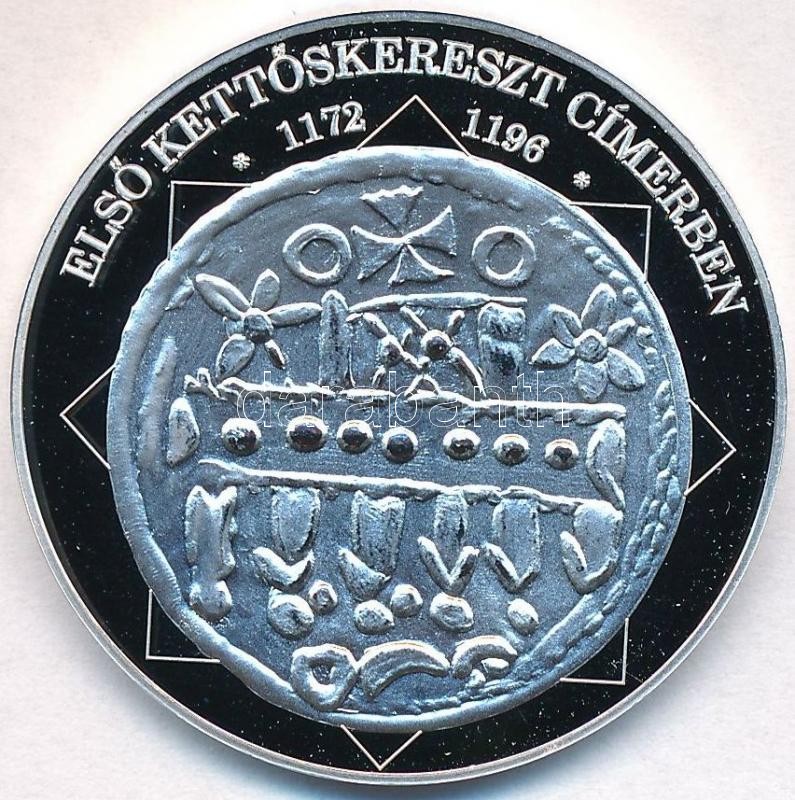DN "A magyar nemzet pénzérméi - Első kettőskereszt címerben 1172-1196" Ag emlékérem tanúsítvánnyal (15g/0.333/35mm) T:PP