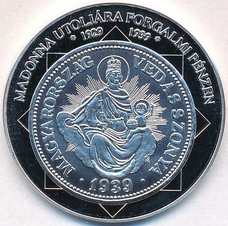 DN "A magyar nemzet pénzérméi - Madonna utoljára forgalmi pénzen 1929-1939" Ag emlékérem tanúsítvánnyal (15g/0.333/35mm) T:PP