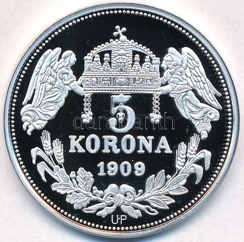 DN "Királyi koronák - IV. (Kun) László 5 korona 1909" Ag emlékérem tanúsítvánnyal (20g/0.999/38,61mm) T:PP fo.
