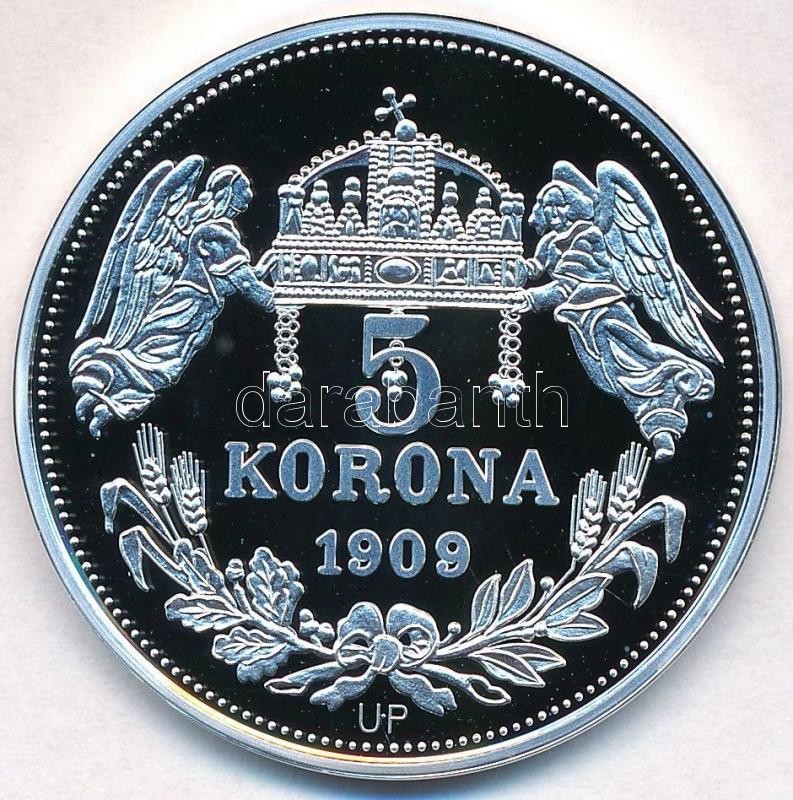 DN "Királyi koronák - Könyves Kálmán 5 korona 1909" Ag emlékérem tanúsítvánnyal (20g/0.999/38,61mm) T:PP kis fo.
