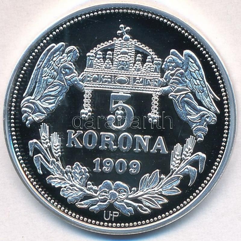 DN "Királyi koronák - Orseolo Péter 5 korona 1909" Ag emlékérem tanúsítvánnyal (20g/0.999/38,61mm) T:PP