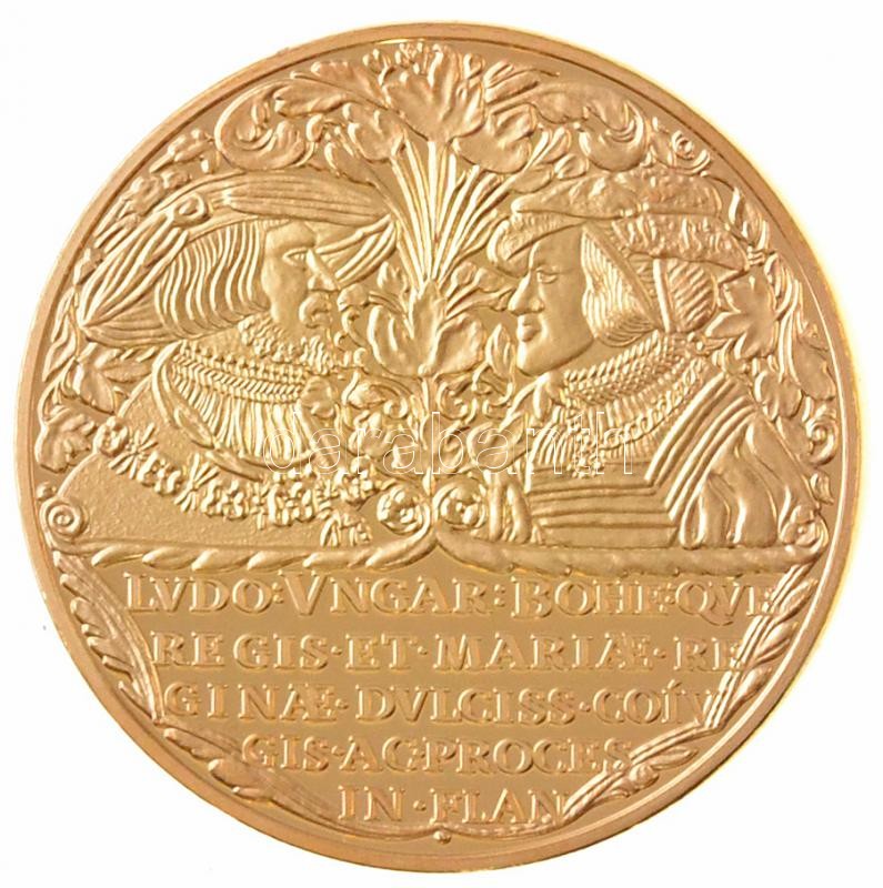 DN "Magyar Aranyóriások - Emlékérem a mohácsi csatavesztés 20. évfordulójára 1546" aranyozott Cu utánveret, tanúsítvánnyal T:PP