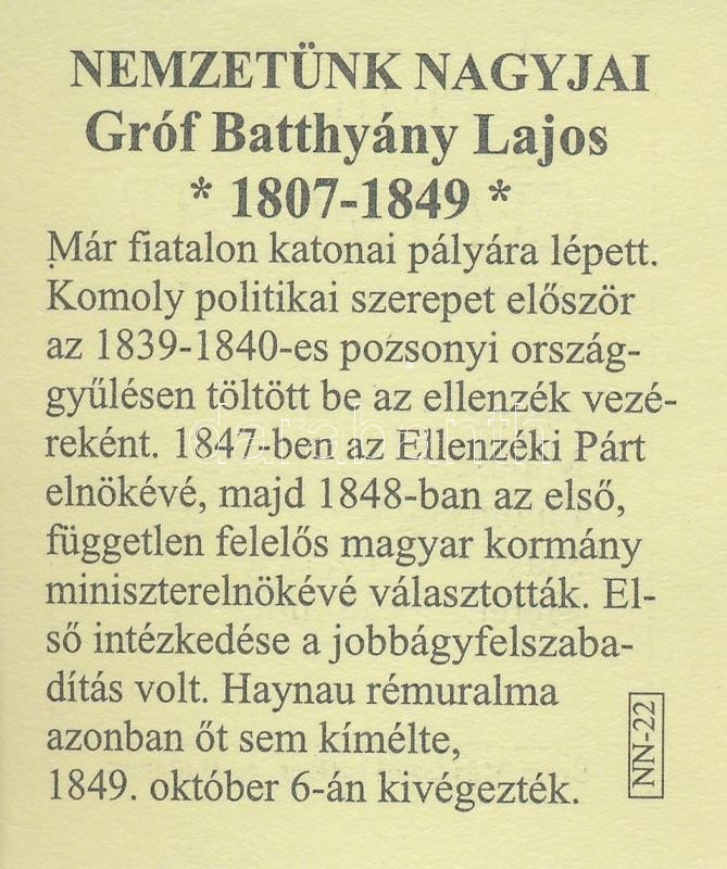DN "Nemzetünk Nagyjai - "A magam útját jártam, ezért ölnek meg" - Gróf Batthyány Lajos / Isten áldd meg a magyart!" Ag emlékérem tanúsítvánnyal (10,37g/0.999/35mm) T:PP