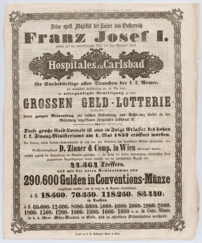 Description: Csehország / Történelmi tartomány / Karlovy Vary 1851. "Karlsbadi Kórház" tájékoztatót a nyereményjátékról T:II,II-
