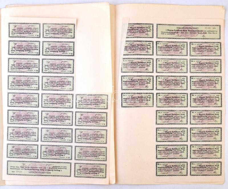 Description: Budapest 1918. "Magyar Épitőipari Részvénytársaság" részvénye 200K-ról, bélyegzésekkel és szárazbélyegzővel, szelvényekkel (2x) sorszámkövető pár T:I-,II