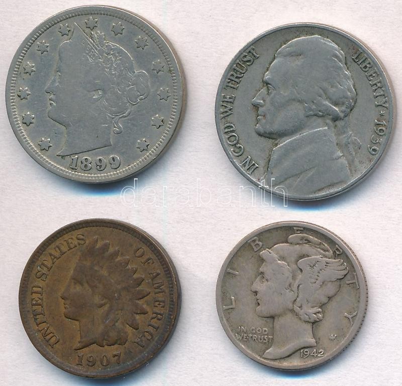 https://www.darabanth.com/en/299-Online-auction/299.0/Numismatics/Worldwide-silver-and-metal-coins~400013/Amerikai-Egyesult-Allamok-1899-5c-Cu-Ni-plus-1907-1c-Br-plus-1939-25c-Ag-plus-1942-1d-Ag-T2-3--USA-18~II1600023