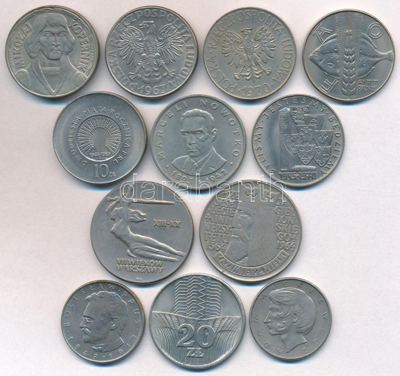 Poland 1970-1975. 10 Zlotych (10xdiff) commemorative issues + 1973-1976. 20 Zlotych (2xdiff) commemorative issues C:XF