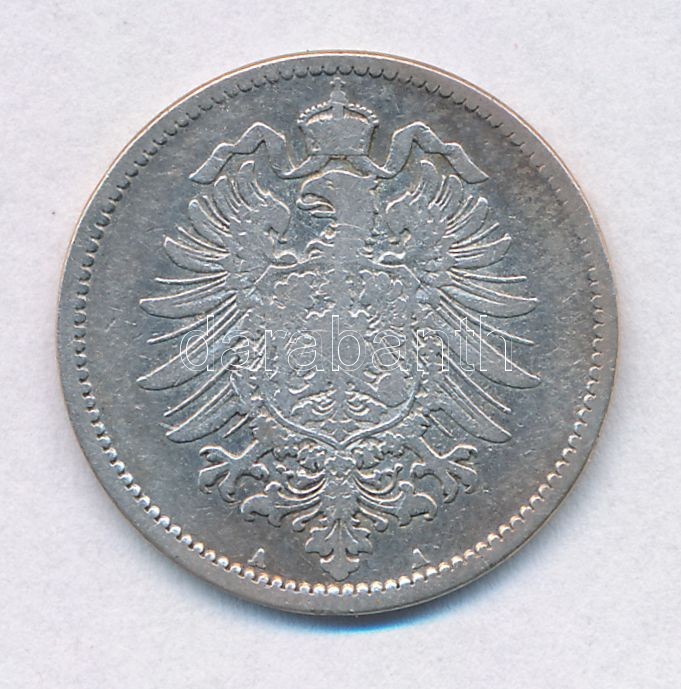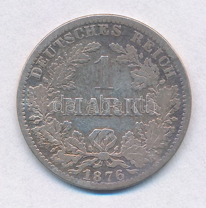https://www.darabanth.com/en/299-Online-auction/299.0/Numismatics/Worldwide-silver-and-metal-coins~400013/Nemet-Birodalom-1876A-1M-Ag-T2-3-patina--German-Empire-1876A-1-Mark-CVF-F-patina--Krause-KM237~II1586498