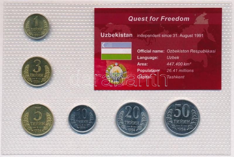 Uzbekistan 1994. 1 Tiyin - 50 Tiyin (6xdiff) "Quest for Freedom" series, coin set in plastic case C:BU