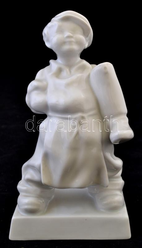 Herendi cipész inas, fehér mázas, jelzett, hibátlan, m:18 cm