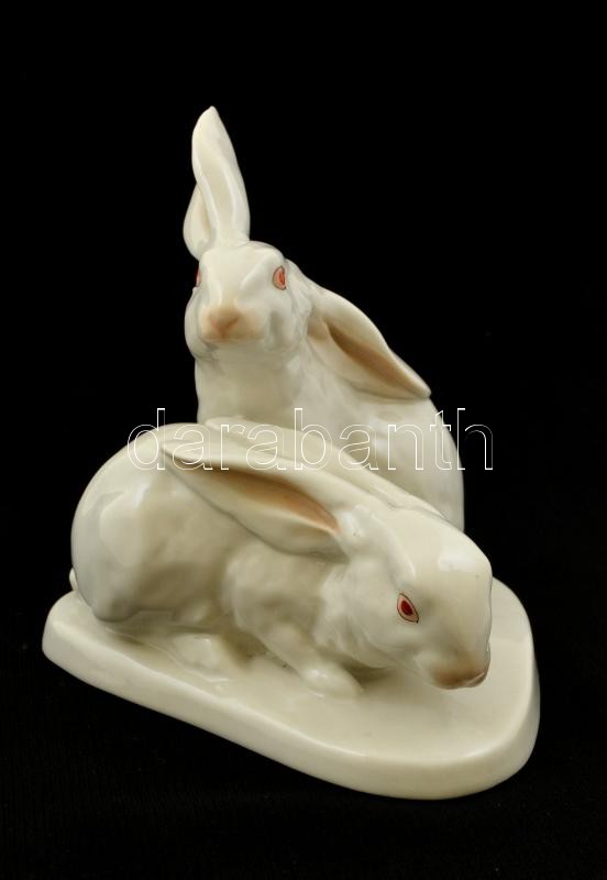 Herendi porcelán nyuszipár, kézzel festett, jelzett, hibátlan, 13x12 c...